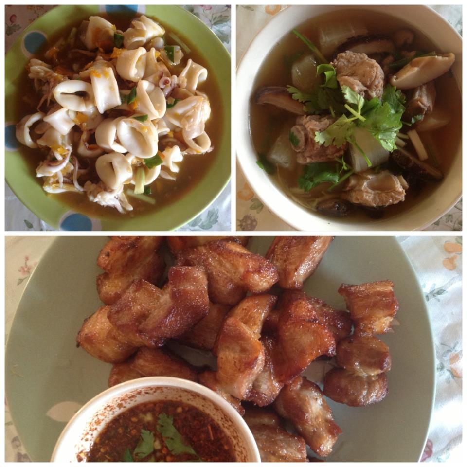 มื้อเช้า: เน้นโปรตีนจากพืชและไข่ มีไข่สองฟอง มันฝรั่งนึ่ง น้ำเต้าหู้สูตรไม่มีน้ำตาลแต่อร่อยเย็นชื่นใจ ส่วนถั่วเขียวต้มน้ำตาลหวานน้อยนิดนั้น ทานไม่ไหว ยกไปมื้อเที่ยงค่ะ มื้อเที่ยง: ไก่ หมู ปลา ครบน
