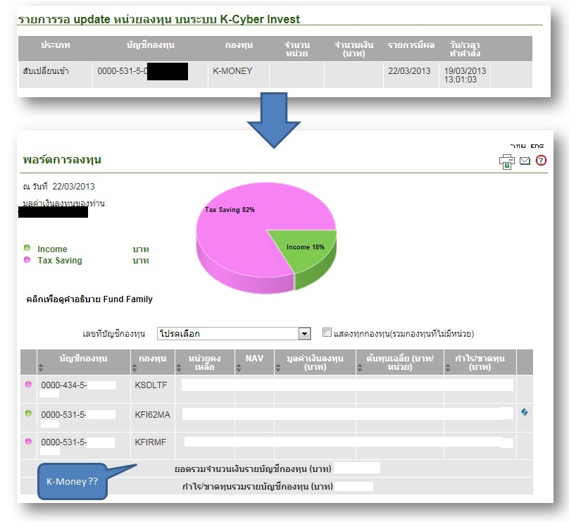 ณ. ตอนนี้(23/03/2556 ,9:00) ผมตรวจดู กอง K-Money ยังไม่มีในพอร์ท