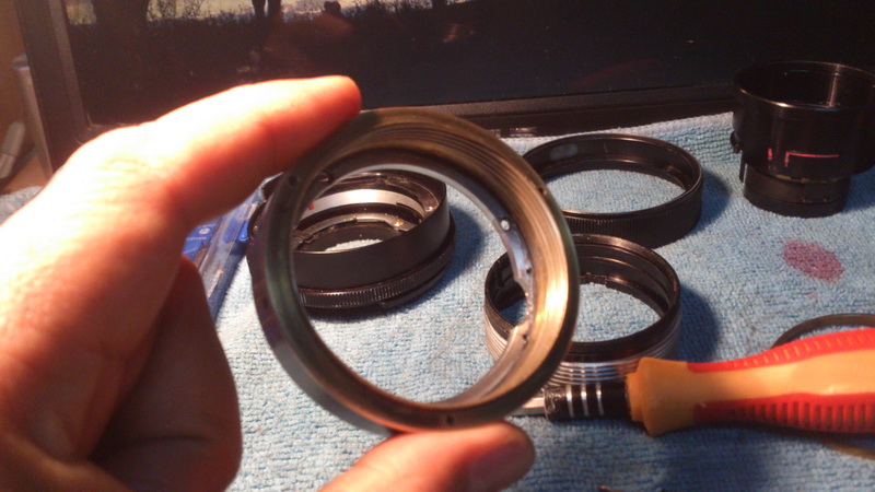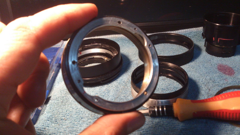 ต่อมาใส่เกลียวตัวกลาง ความยากมันอยู่ตรงนี้แหละครับ ว่าจะใส่อย่างไรให้ได้ระยะ ที่สามารถโฟกัสแล้วมันได้ทั้ง ไกล้สุดและ Infinity