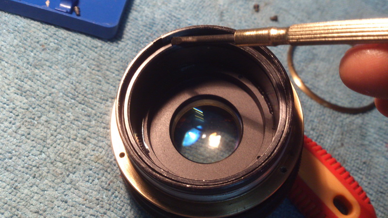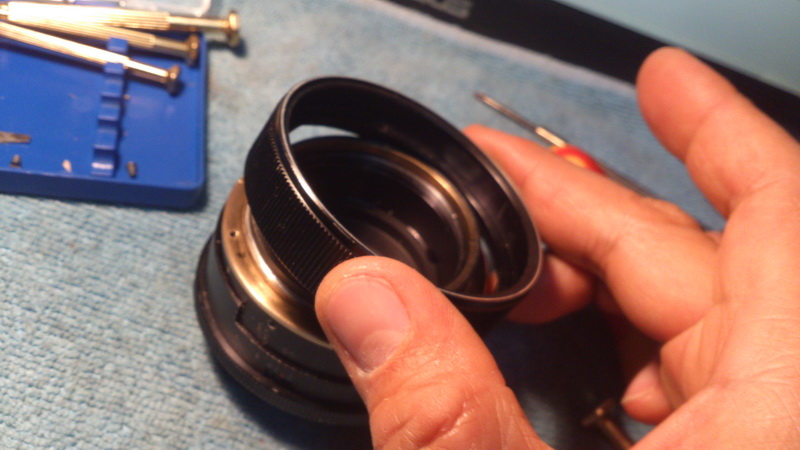 ที่สกรูยึดจะอยู่ท้ายของนอก แค่คว่ำหน้าเลนส์ลงก็ ขันลงไป แต่ตัวนี้ มันบังคับให้ใส่ด้านใน ซึ่งมันยากตรงมันมีพื้นที่ให้ขันไขควงน้อย