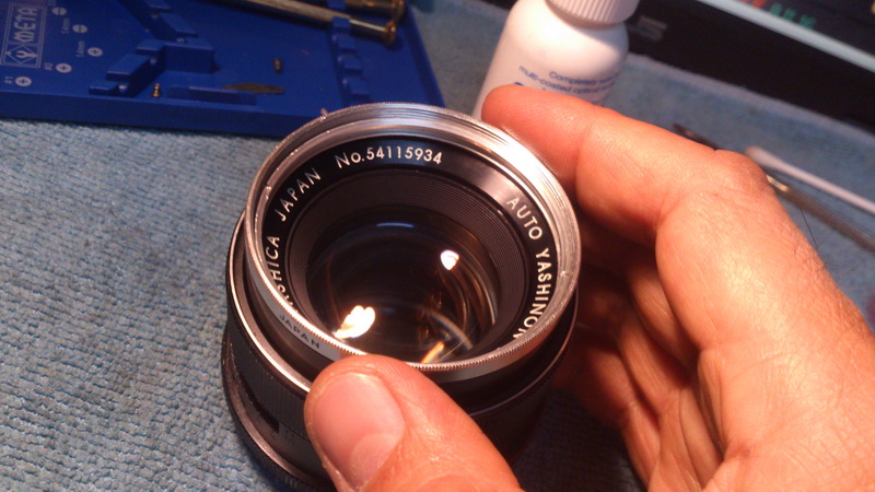 ตอนได้เลนส์ตัวนี้มา สภาพอย่างที่เห็นครับ ที่เอามาเพราะคิดว่าการประกอบคงไม่ต่างจาก Yashica ตัวอื่นๆ เช่น ตัว 50mmf1.9 ,f2