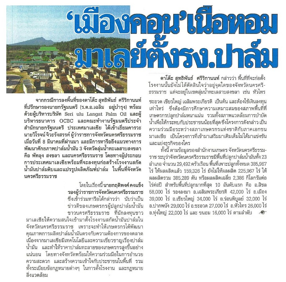 "เมืองคอน" เนื้อหอม มาเลย์ตั้งโรงงานปาล์ม