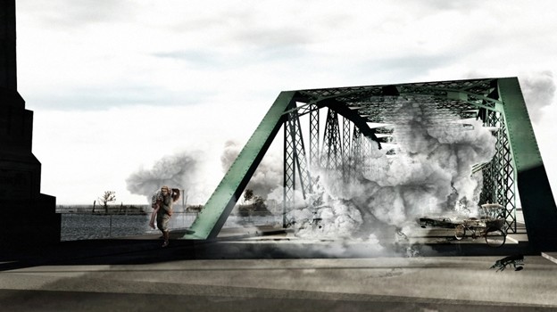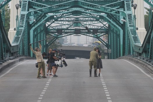 ฉากอลังการแบบนี้ ผู้กำกับฯ เลยต้องทำเรื่องขอปิดสะพานพุทธ พร้อมเกณฑ์ทีมงานลงพื้นที่จริงออกแบบดีไซน์ฉาก พร้อมเก็บรายละเอียดเหตุการณ์ต่างๆ ที่จะเกิดขึ้น เพื่อให้ตรงตามยุคสมัยมากที่สุด นอกจากนั้น ยังมีการทำงานบนแบบจำลองย่อส่วนอย่างละเอียดของสะพานพุทธกันก่อน เพราะต้องกำหนดจุดตั้งกล้องถ่ายทำ เพื่อให้ได้ภาพการสัญจรไปมาของรถโบราณ รถจักรยาน รถถีบสามล้อย้อนยุค และตัวประกอบนับร้อยคนที่เป็นทหารญี่ปุ่น พลเรือนให้สมจริงและตรงกับยุคสมัยมากที่สุด