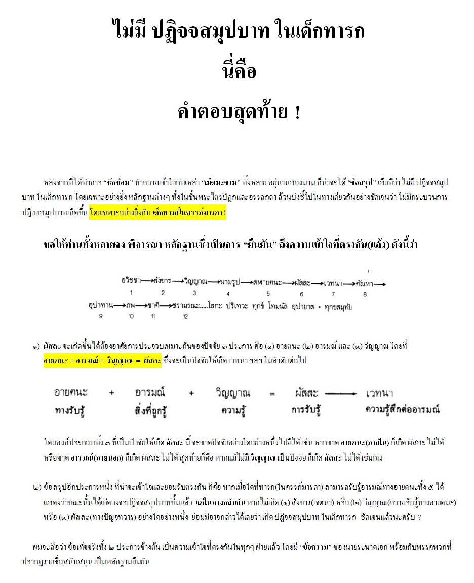 สรุปความได้ว่า ไม่มี ปฏิจจสมุปบาท ในเด็กทารก น่ะสิ !