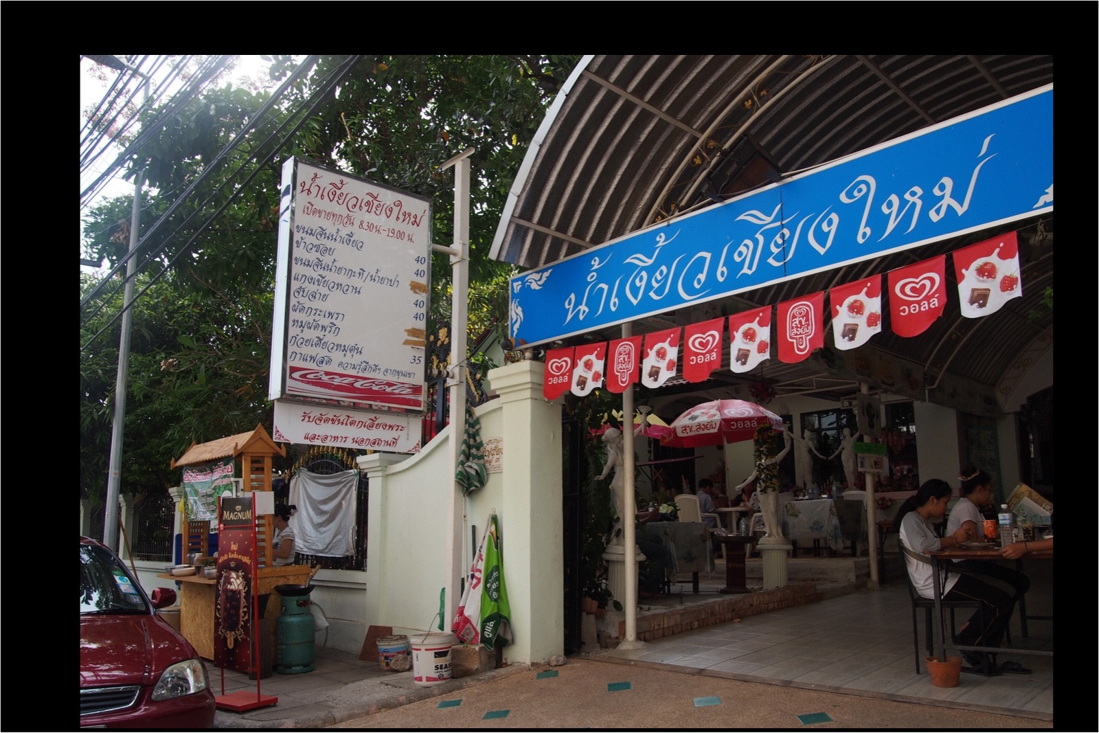 แม่นางมาขายของกิน ด้วยใจรัก พวกเราก็เข้ามากินกันบ่อย แม่นางดูร่ำรวย มีเก๋งดาวห้าแฉกจอดประดับบารมีในบ้าน