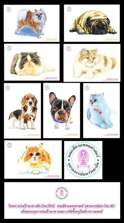 จากผลงานการกวาดภาพของอาจารย์พัลลภ อนุสนธิ์พรเพิ่ม ซึ่งได้จัดทำเป็นโปสการ์ดที่ระลึกจำนวน 8 แบบ เพื่อจัดจำหน่ายมอบรายได้โดยไม่ หักค่าใช้จ่าย โดยสามารถหาซื้อได้ที่ ห้องธุรการชั้น 4โรงพยาบาลสัตว์เล็ก คณะสัตว์แพทย์ศาตร์ จุฬาลงกรณ์มหาวิทยาลัย (บริเวณศูนย์หนังสือจุฬา) ซึ้งต้องขอขอบคุณผู้ร่วมสนับสนุนโครงการ พญ ศศินันท์ พญ อรปรียา และ นพ วศิน