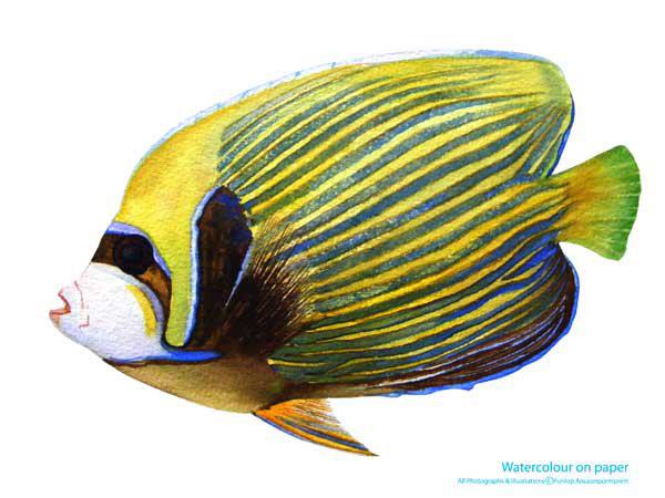 ได้รับภาพถ่ายปลาสวยงาม จากเทพด้านสัตว์ทะเล เพื่อนำมาวาดเป็นภาพวาดสีน้ำงานอดิเรกยามว่างจากงานประจำที่ชอบ วันนี้ลองวาดปลาสีสวยสดที่เป็นดังนางฟ้าแห ่งท้องทะเลลึกที่มีชื่อว่า ปลาสินสมุทร หรือที่มีชื่อสากลที่ใคร ๆ เรียกกันว่า Angelfish พี่ปลานางฟ้าแห่งท้องทะเล (ไม่รู้รักเด็กไม คนละฟ้าเดียวกัน) แต่เอ๋ทำไมน่ะคนไทยไม่เรียกว่าปลานางฟ้า ทับศัพท์ภาษาอังกฤษ ทำไมต้องเรียกว่าปลาสินสมุทร หรือจะเกี่ยวอะไรกับวรรณคดีไทยเรื่องพระอภัยมณีน่ะ ไม่รู้ว่าชื่อ สินสมุทร เกี่ยวอะไรกับวรรณคดีเรื่องพระอภัยมณีไมนะ จำได้ว่าสินสินสมุทรเป็นลูกของพระอภัยมณีก ับนางผีเสื้อสมุทร มาคิดดูดีดีในทะเลก็มีปลาผีเสื้อด้วยดิ แถมหน้าตาละม้ายคล้ายปลาสินทรสมุทรมาก ไม่ทราบว่าเกี่ยวกันไมน่ะ แต่แค่เห็นสีสันและลวดลายบนตัวของเจ้าปลาสินสมุทรละชักคันไม้คันมือ อยากจะบรรเลงเพลงภู่กันเป็นภาพวาดสีน้ำ เจ้าปลาแห่งวรรณคดีไทยตัวนี้มากเลย ว่าแล้ว หยิบพู่กันจุ่มสีน้ำ วาดปลาสีสันสดใสที่มีชื่อว่า สินสมุทรดีกว่า