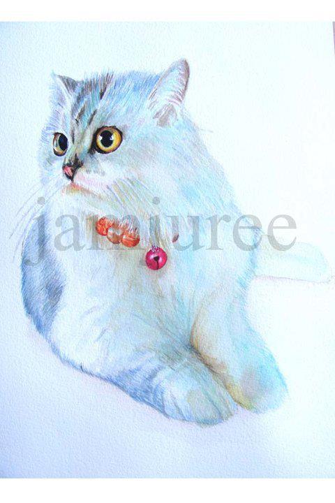ภาพวาดสีน้ำ น้องแมวสโนวี่ แมวที่บ้านผมเองง่า