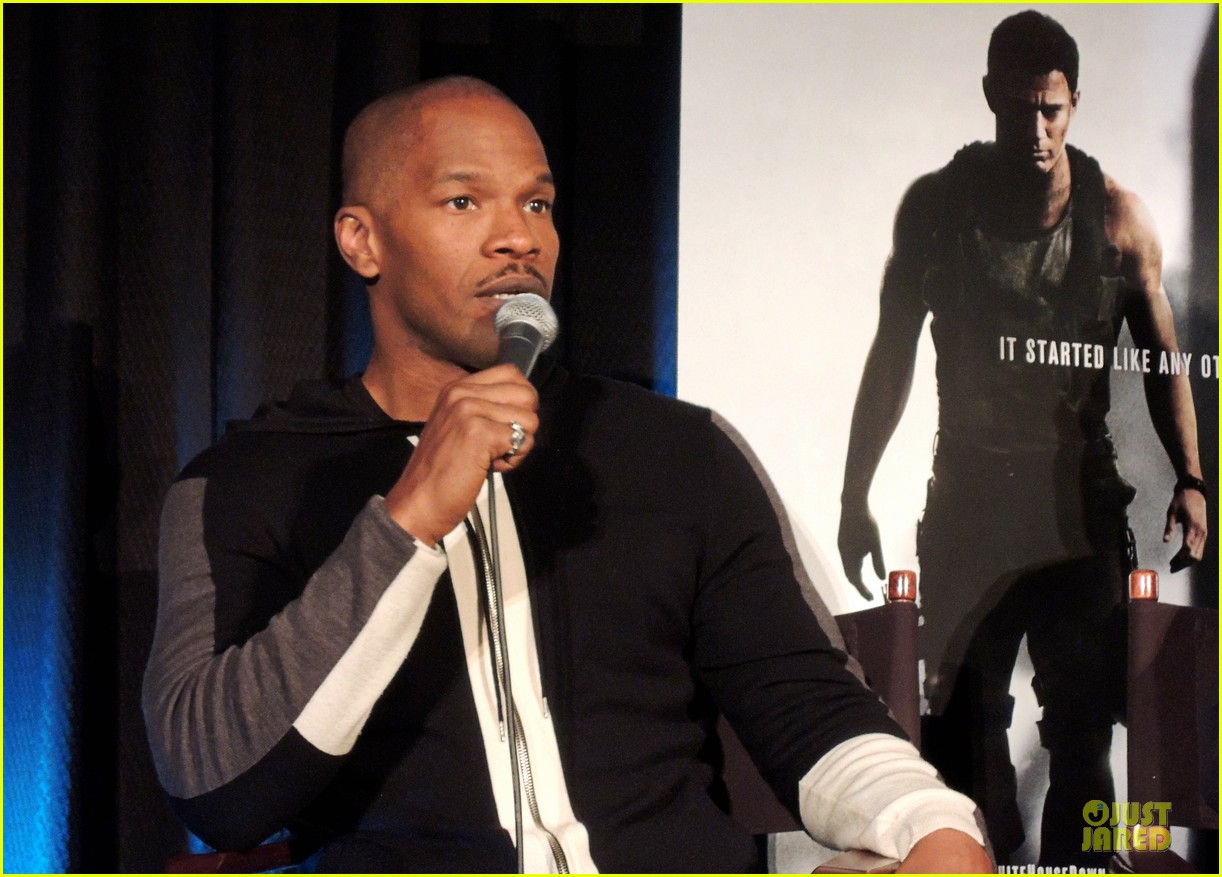 วันเดียวกันนั้น Jamie Foxx ที่ร่วมงานกับเขาด้วยและผกก. Roland Emmerich แถลงข่าวโปรโมตหนังที่ Regal Square Union theater ใน New York City