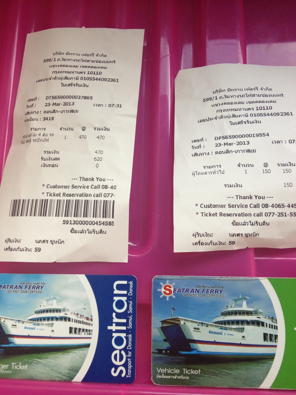 ทริปนี้ไปรถส่วนตัวค่ะ ถึงท่าเรือดอนสักก็สักประมาณ เกือบเจ็ดโมงครึ่ง พนักงานขายตั๋ว (ซีทรานเฟอรี่) บอกว่าเที่ยวต่อไปเก้าโมงนะคะ แต่เอาเข้าจริงโชคดีค่ะ รอบตัดคิวรถได้เป็นคันสุดท้ายพอดีเลย อิอิ