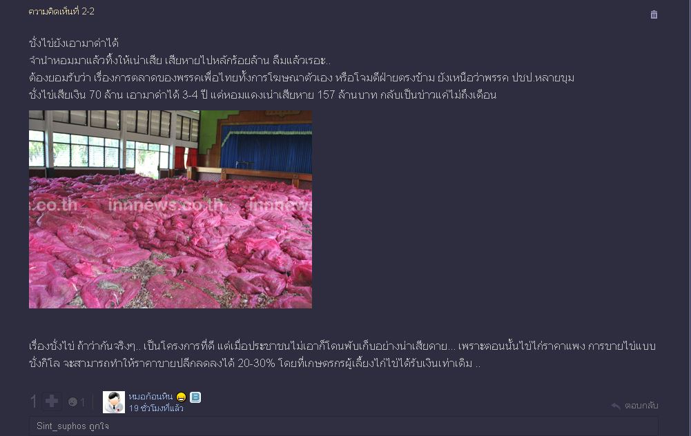 เรื่องชั่งไข่ ถ้าว่ากันจริงๆ.. เป็นโครงการที่ดี แต่เมื่อประชาชนไม่เอาก็โดนพับเก็บอย่างน่าเสียดาย