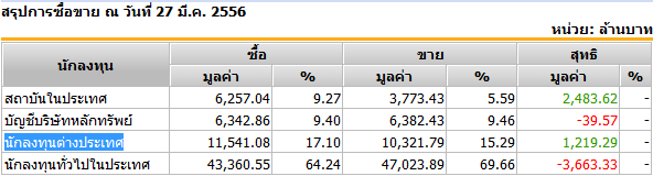 สรุปการซื้อขาย ณ วันที่ 27 มี.ค. 2556