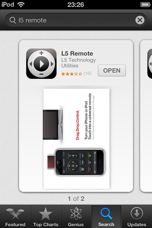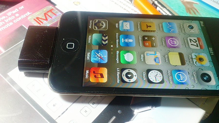 เจ้ารีโมทจิ๋ว L5 ผู้ช่วยคนใหม่ของผม จับคู่กับอุปกรณ์สั่งงาน iPod touch Gen 4 อายุ 3 ขวบ ที่ยังพอมีพลังเหลืออยู่บ้าง ทิ้งมันไว้เฉยๆ แทบไม่ได้ใช้งาน จะขายทิ้งก็ไม่ได้ เพราะตอนสั่งซื้อให้เขาสลักด้านหลังเครื่องเป็นชื่อคนรัก เลยต้องเก็บไว้เป็นสิ่งของแทนความสัมพันธ์ในครอบครัว ห้ามซื้อขายจ่ายแจก