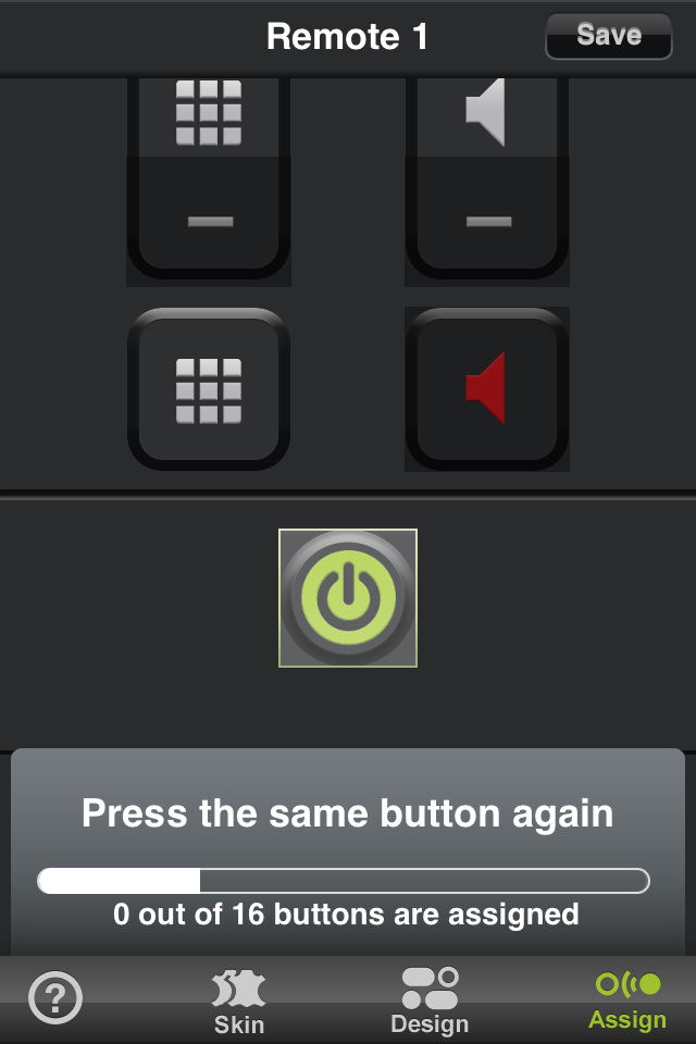 หัน iOS กับรีโมทเข้าหากัน กดปุ่มที่จะเรียนรู้กันละกันของปุ่มบนหน้าจอ iOS แล้วกดปุ่มคำสั่งเดียวกันบนรีโมทของเรา เช่นกดปุ่ม Power บน iOS ก็ต้องกดปุ่ม power บนรีโมท จน Assign กันเสร็จ (ขึ้นสีเขียว) ถ้าไม่สำเร็จก็ทำตามขั้นตอนตั้งแต่แรกจนขึ้นเขียว บางปุ่มทำหลายครั้งกว่าจะเรียนรู้กันได้ บางปุ่มก็ Assign กันไม่ได้เลย ไม่รู้เพราะอะไรเหมือนกัน