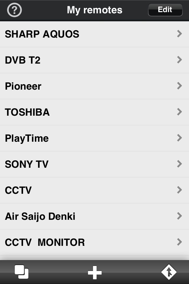 สามารถเพิ่ม(+) แก้ไขชื่อ(แตะที่ชื่อรีโมท) หรือลบรีโมท (ปาดที่ชื่อรีโมทหรือปุ่มแดงหน้าชื่อ)