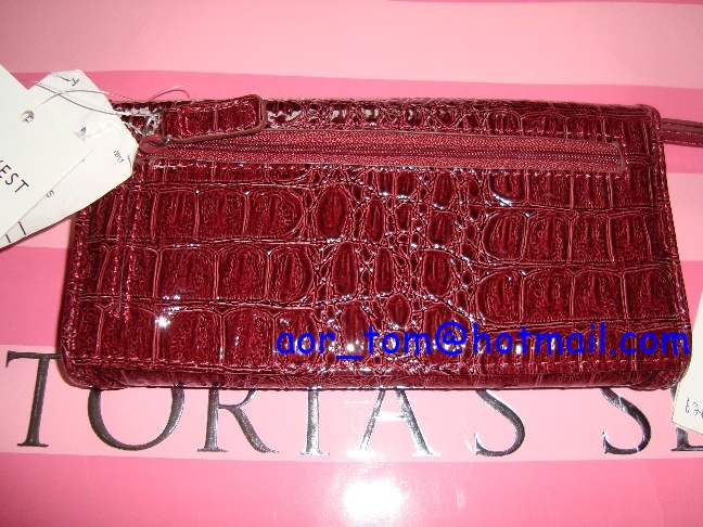 No.3 สีแดงลายจระเข้แบบคลัทท์ แบบ 2 พับ ด้านหลังมีช่องปิดซิป มีสายคล้องมือ (สายถอดออกได้)