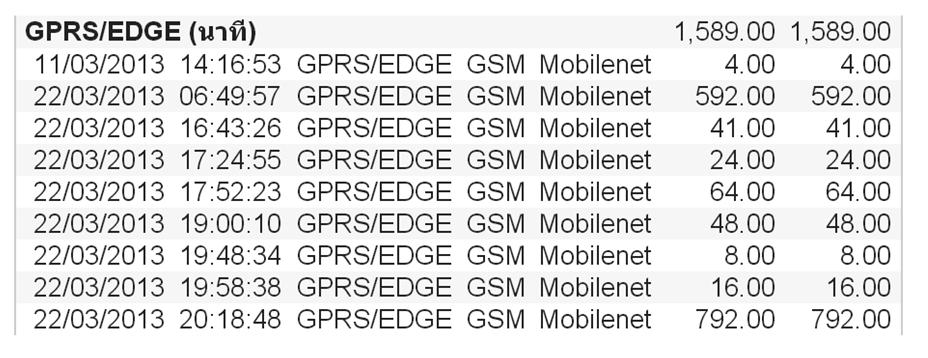 คุณมียอดค่าใช้บริการGPRS/EDGE/3G เพิ่มขึ้น. Ais ขออนญาตโทรติดต่อเพื่อแนะนำการใช้บริการ เราเลยcheck ค่า บริการ GPRS จากมือถือพบว่ามีการแจ้งค่าใช้จ่าย ประมาณ 800+บาท ตอนนั้นงงมาก. เราไปติดต่อศูนย์บริการais. เพื่อสอบถามข้อมูล. ได้ผลอออกมาแบบนี้