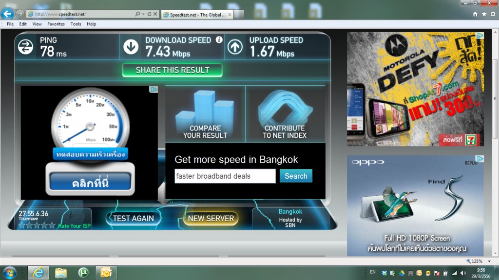 อึดอัดมาตั้งนาน ย้ายค่ายมาTRUE วันนี้ลอง testspeed ดู....อึ้งเลยครับ