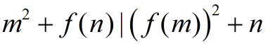 จงหาฟังก์ชัน f:N -> N ทั้งหมดซึ่งสอดคล้องกับเงื่อนไขนี้สำหรับทุกจำนวนนับ m,n: