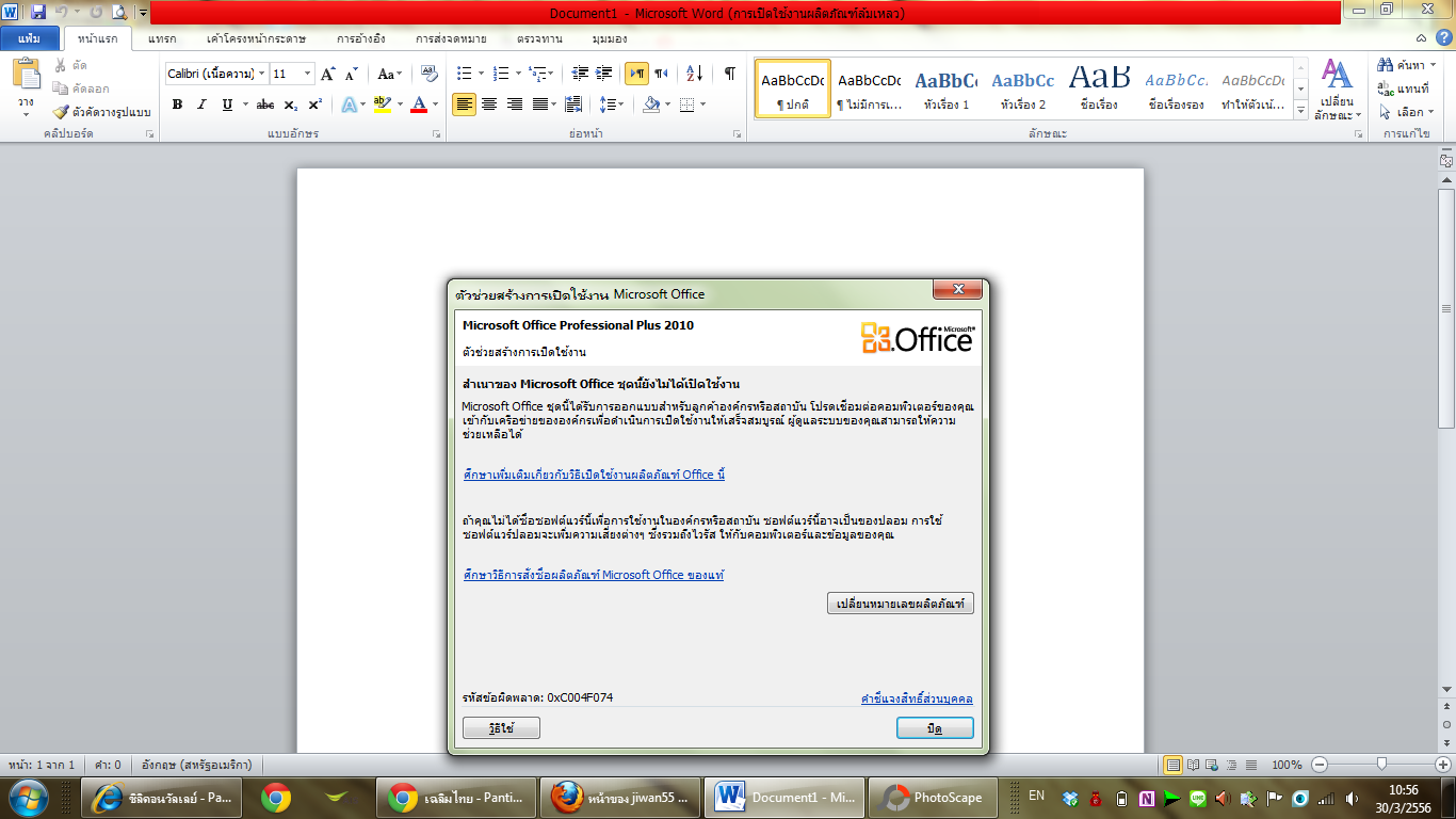 ล้างเครื่องจาก Win XP เป็น Win7 ลงโปรแกรม Word 2010 ไม่ได้ ช่วยแน่ะนำด้วยครับ