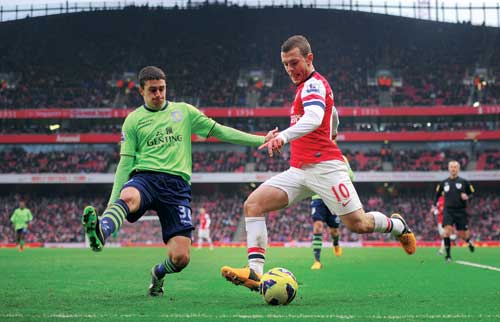 แม้ว่า แจ็ค วิลเชียร์ (ขวา) ของอาร์เซน่อล จะไม่ได้แชมป์มานาน แต่การลงเล่นในเอมิเรตส์ สเตเดี้ยม ทำให้พวกเขาเป็นทีมที่มีกำไรทุกปี และมูลค่าของสโมสรก็เป็นรองแค่ ''ผีแดง'' ทีมเดียว