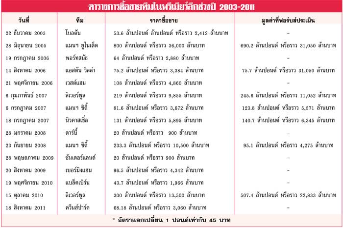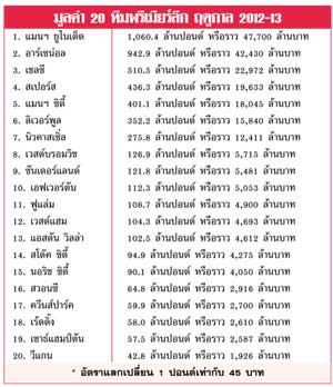 [กระทู้พรีเมียร์ลีก 2013-03-30] มูลค่า 20 ทีมพรีเมียร์ลีก