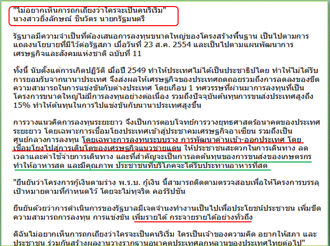 เริ่มที่ประเด็นการแถลงของนายกรัฐมนตรียิ่งลักษณ์ค่ะ