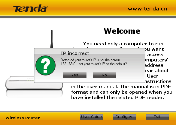 ถ้ากด no มันจะเข้าหน้า http://192.168.1.1/ น่ะค่ะ