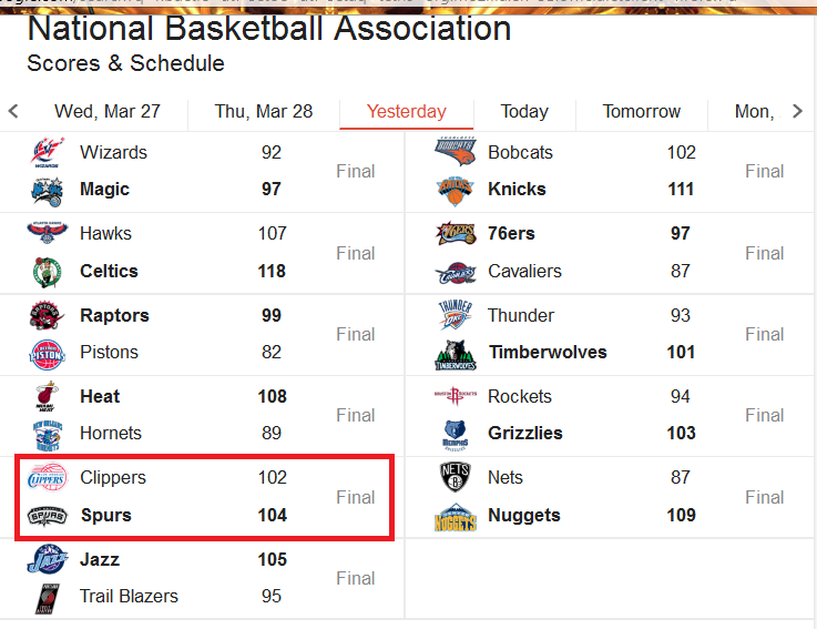 เมื่อวานสเปอร์ส์ชนะคลิปเปอร์ส์ไปสองแต้มค่ะ สงสัยเกมจะสนุก 55+