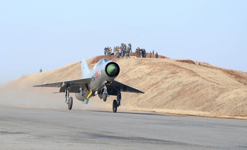 ท่านผู้นำเกาหลีเหนือขณะเยี่ยมชมการฝึกซ้อมระหว่างกองทัพอากาศ หน่วยต่อต้านอากาศยาน และหน่วยพลร่มเื่มื่อเดือน ก.พ. 56