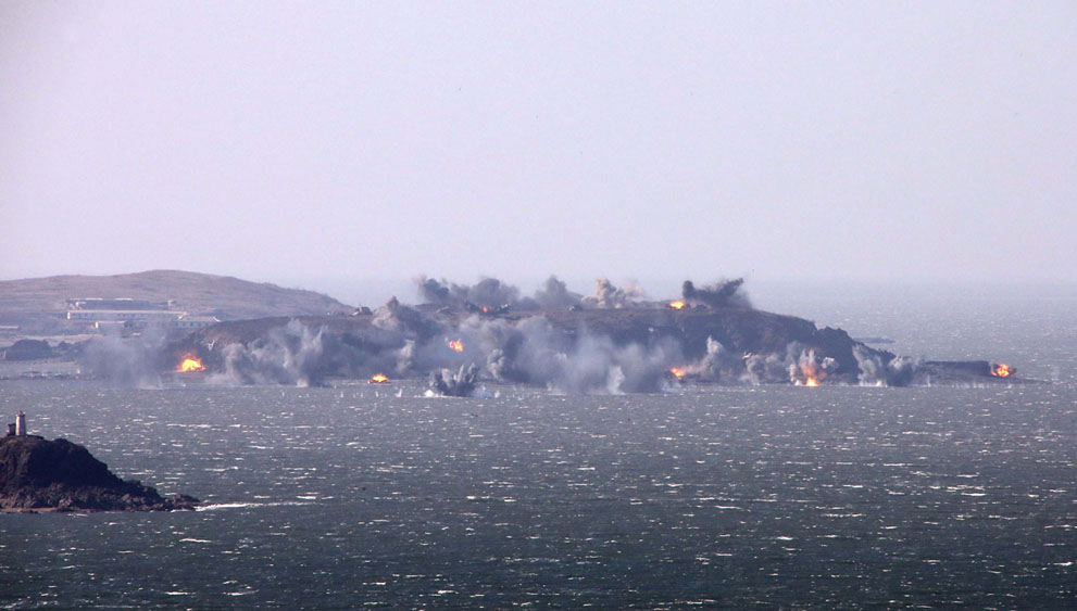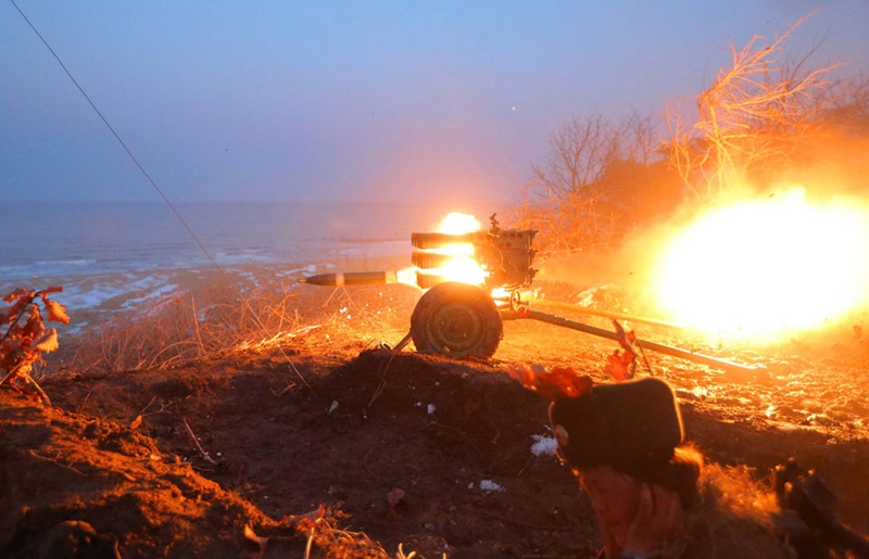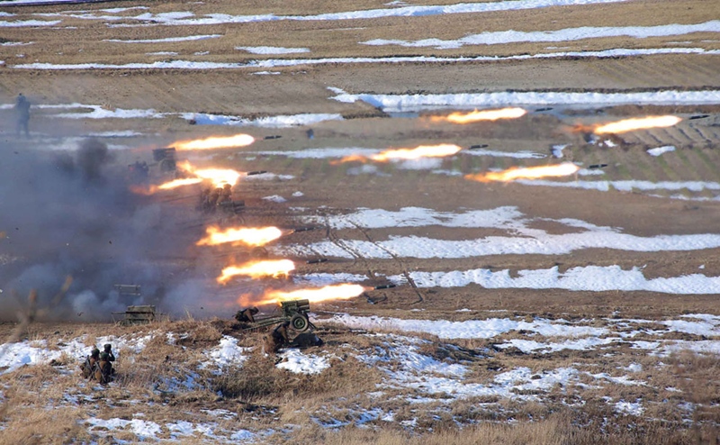 การซ้อมรบด้วยกระสุนจริงบริเวณชายแดนของหน่วยทหารปืนใหญ่เกาหลีเหนือ