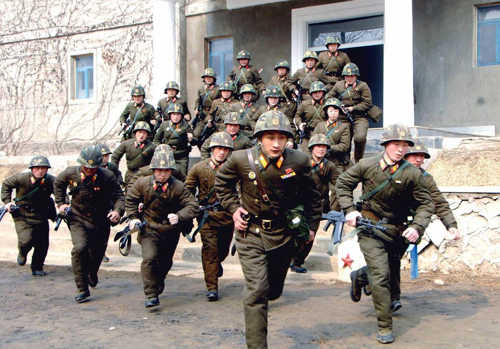ทหารราบเกาหลีเหนือระหว่างการฝึกฝนการรบด้วยอาวุธปืนประจำกาย