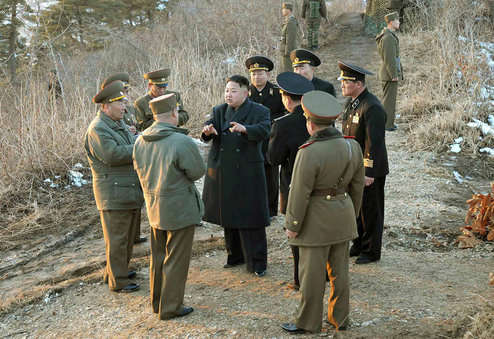 ท่านผู้นำเกาหลีเหนือระหว่างการตรวจเยี่ยมค่ายทหารปืนใหญ่ทางภาคตะวันตกของประเทศ