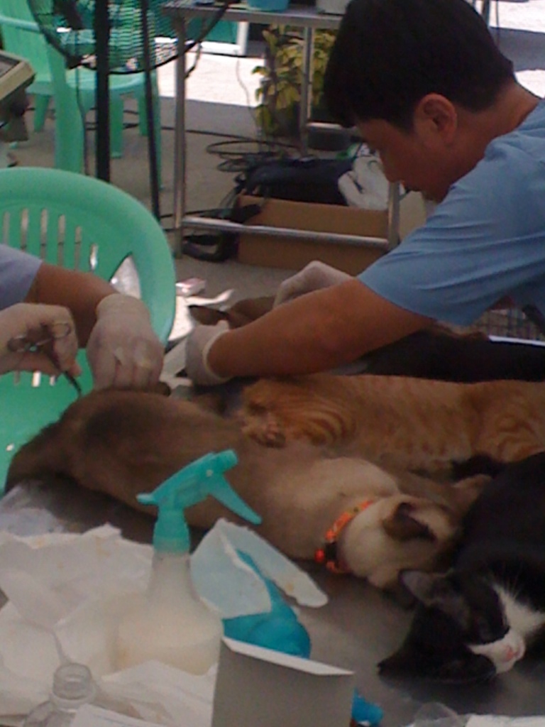 คือ วันนี้ผมพาแมวตัวเมียไปทำหมัน ก่อนทำหมันได้ตรวจเลือดเรียบร้อยแล้ว ซึ่งโดยรวมแล้ววินิจฉัยว่าสามารถทำหมันได้ และผมให้อดข้าวอดน้ำก่อนทำหมัน 14 ชั่วโมง ส่งไปทำหมันตอน 9 โมงเช้า ทำหมันเสร็จเรียบร้อยผมไ
