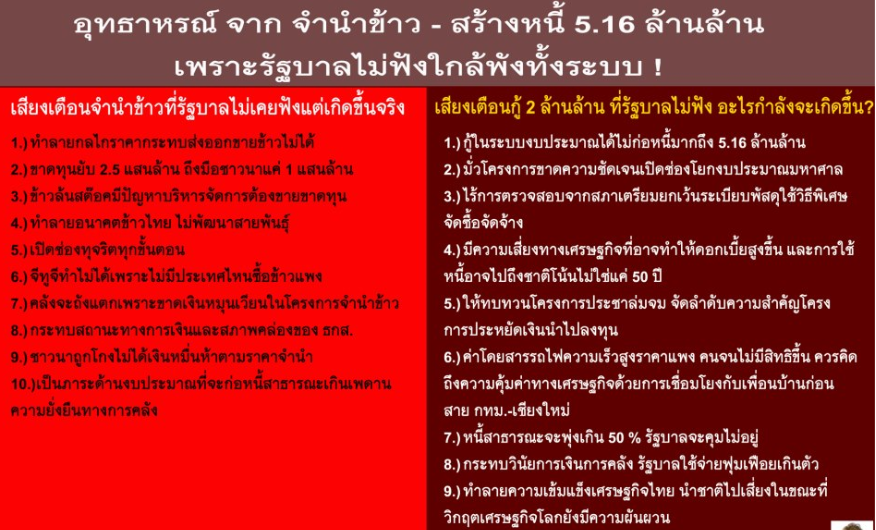 อุทธาหรณ์ จาก จำนำข้าว - สร้างหนี้ 5.16 ล้านล้าน เพราะรัฐบาลไม่ฟังใกล้พังทั้งระบบ !