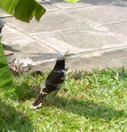 เมื่อเช้าเจอนกตัวนี้ยืนอยู่บนพื้นในสวนนิ่งๆ เลยเดินเข้าไปใกล้เพื่อให้มันบินหนีไป เนื่องจากสมุนสี่ขาสองตัวชอบจับนกเป็นงานอดิเรก แต่มันกลับกระโดดหนีไปได้ที่ละนิด คงบาดเจ็บอะไรซักอย่าง จึงรีบจับไว้ จะได