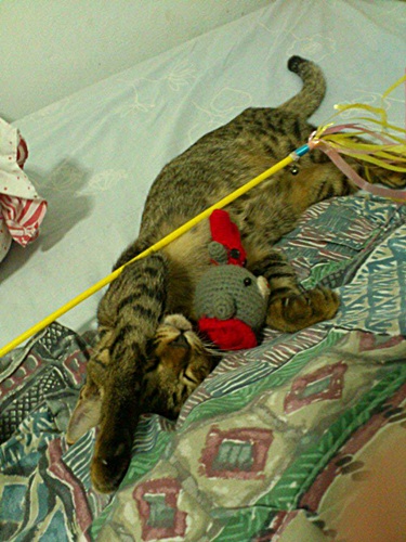 เล่นไม้ริบบิ้นสักพัก ก็เป็นแบบในภาพอ่ะค่ะ จุนแม่ก็ยังนึกในใจ ฟอร์มป่าวว๊า แกล้งหลับตาป่าว