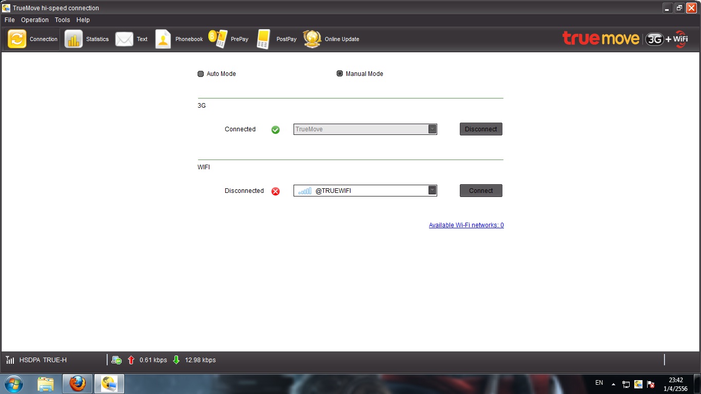 คือผมใช้บริการรายเดือนของ Truemove H ใช้โปรโมชั่น 3G แบบใช้ความเร็วสูงสุดได้ 5GB ถ้าเกินจากนั้นตามโปรโมชั่นบอกว่าจะใช้ที่ความเร็ว 384kbps ได้ไม่จำกัด เดือนนี้พอดีอยู่บ้านซึ่งไม่มีเน็ตเลยเอามาต่อเล่นเน
