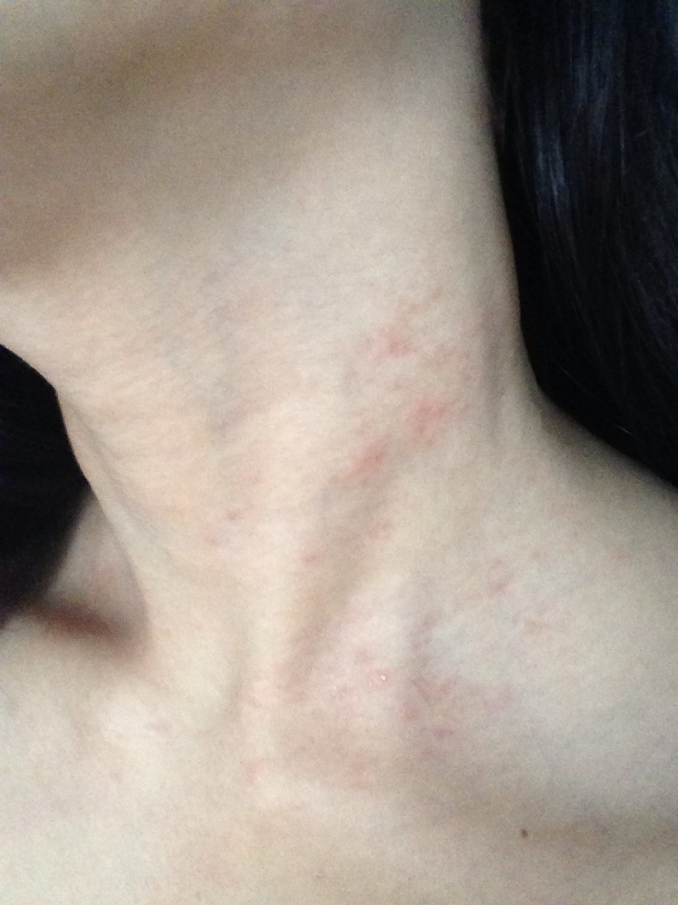 ผื่นแบบนี้คือผื่นอะไรคะ มีลักษณะ คัน และจุดแดงบางจุดค่ะ