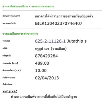 ชำระเงินผ่านkbank แต่ในระบบtrue iservice ยังแจ้งว่าค้างชำระ