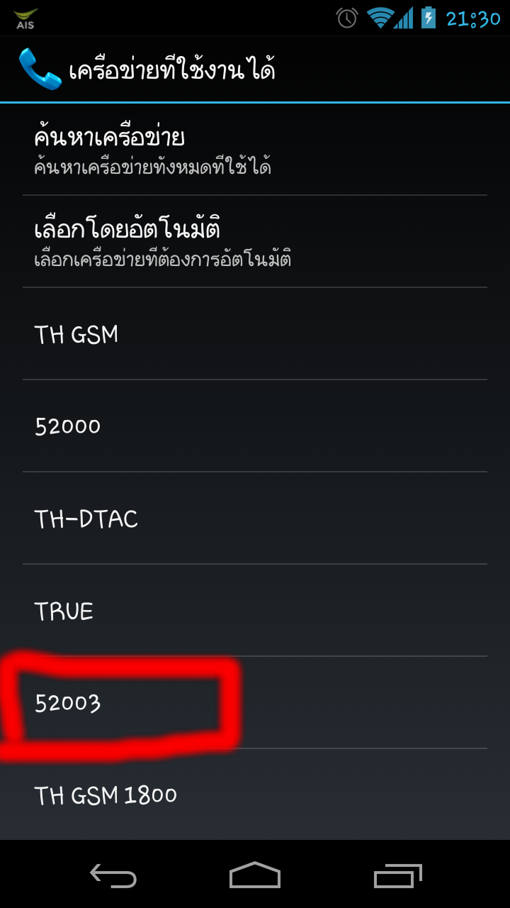 AIS ครับวันนี้ได้มีโอกาสเดินทางออกจากรุงเทพไป จว.สระบุรีครับ พอไปถึงปรากฎว่าสัญญาณหายเพราะใช้52003ครับ รับสายโทรเข้าออกไม่ได้ จนต้องเปลี่ยนมาเป็น the GSM ถึงจะโทรได้ปกติ แต่ปรากฎว่ามีสัญญาณ "R&qu