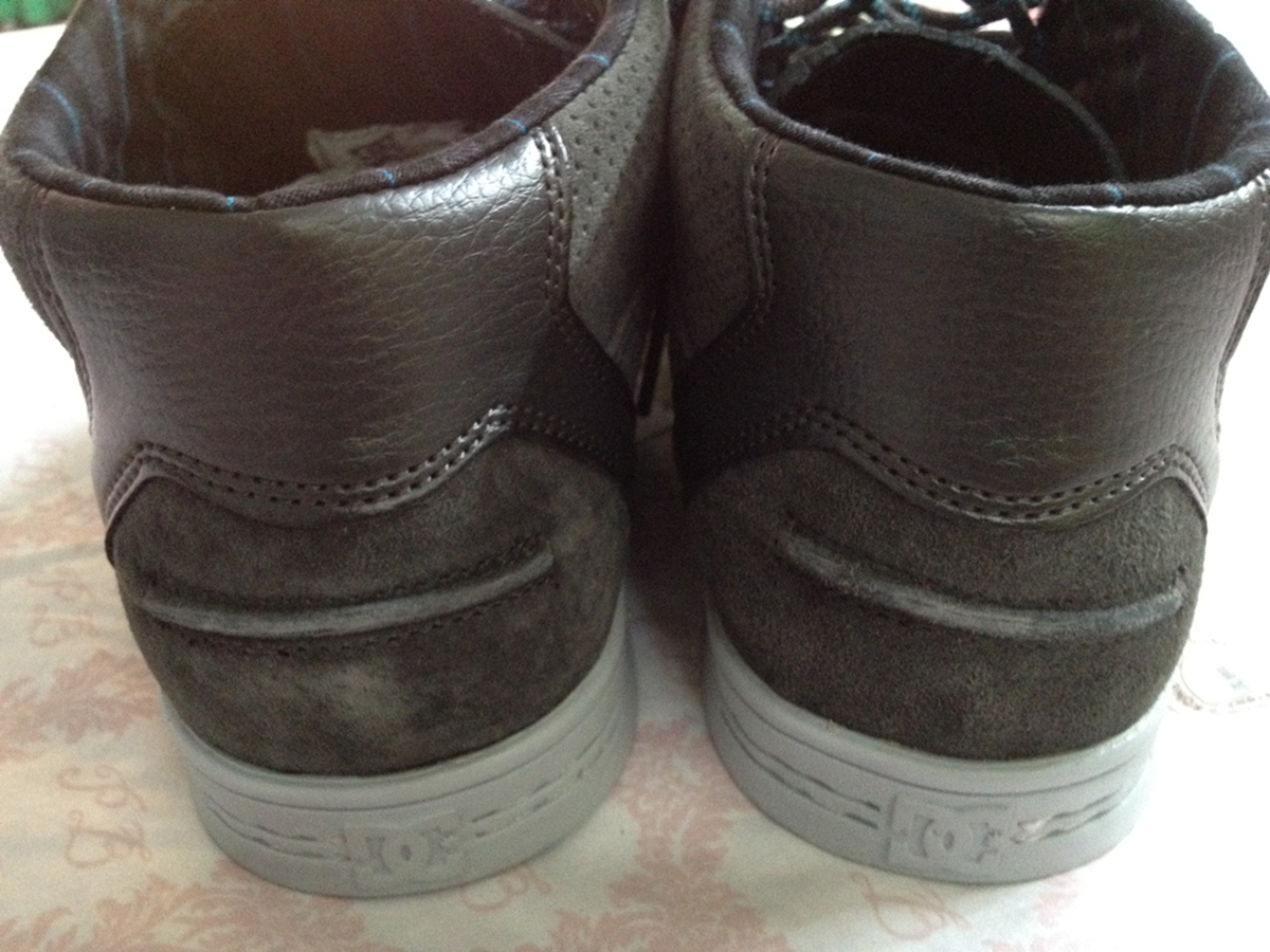 มีเย็บด้ายที่ส้นรองเท้า ตรงโลโก้ DC แต่ตรงขอบยางพื้นรองเท้ากับตัวรองเท้าอัดกาวไว้ครับ