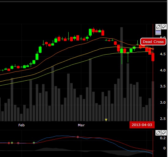คือ ปกติดูแนวรับ แนวต้าน ตอนนี้แนวรับประมาณ 6.50 - 6.60 ซึ่งยังไม่หลุดแนวรับนี้ แล้วยังไม่หลุด เส้น EMA 35 ... ส่วนเทรนยังเป็นขาขึ้นอยู่ MACD ตัดลง เป็นสัญญาณขาย แต่ยังไม่เกิด dead cross ... เลยว่าจ