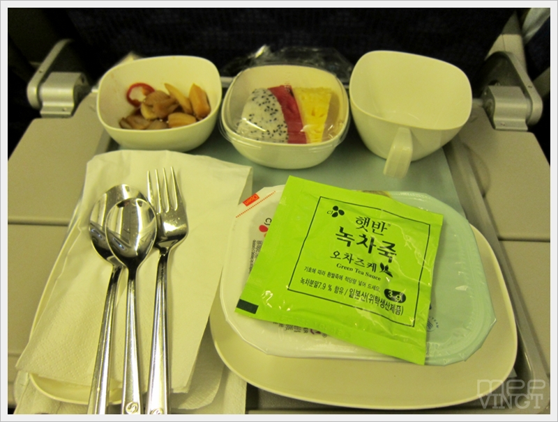 นอนหลับไปสักพัก คุณแอร์สาวก็มาบริการเสริฟ์อาหารราว ตี1.30น.(เวลาไทย)
