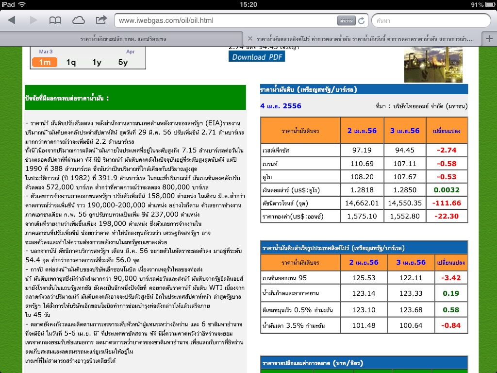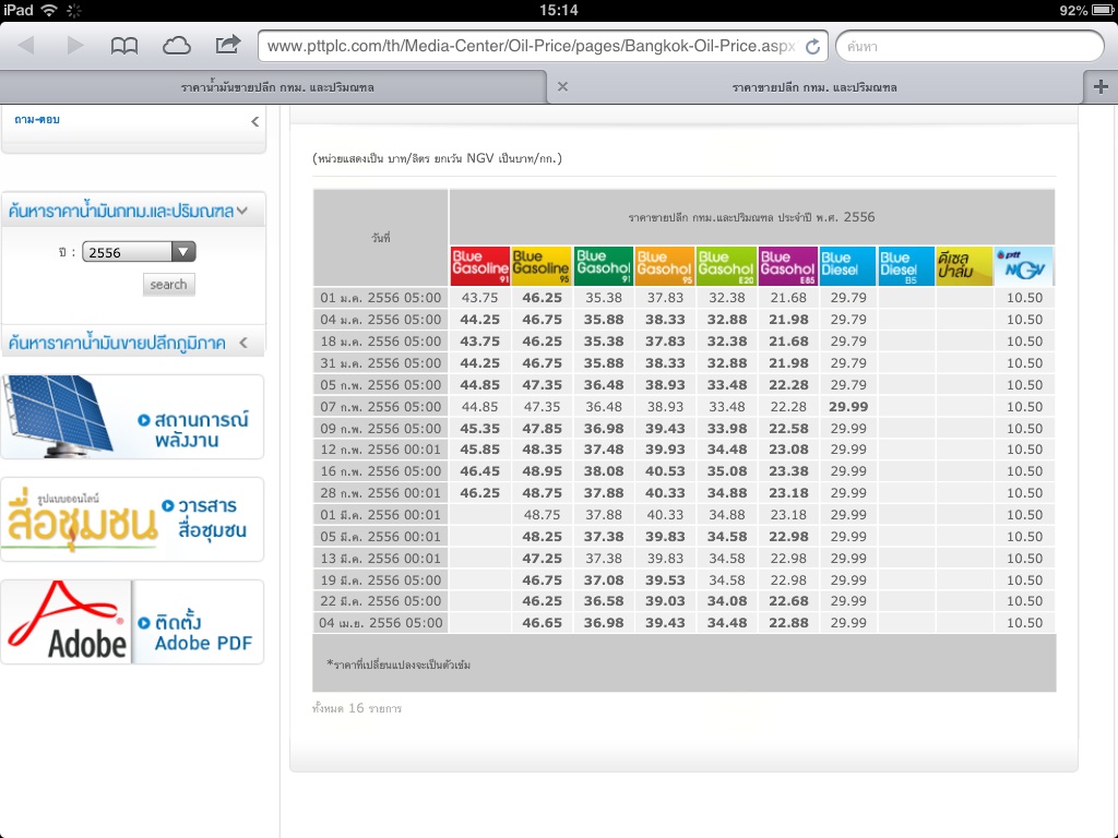 จากข้อมูลที่ได้มาก้อแสดงให้เห็นว่า ราคาน้ำมันปรับลดลง แต่พี่ไทย ขึ้นราคาวันนี้ ( 4 เม.ย. 56 ) 0.40 สตางค์