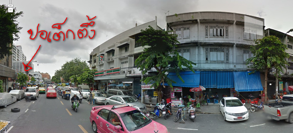 เดินตรงเข้าไป เจอสี่แยกเล็กๆอันแรก เลี้ยวขวามือที่เป็นโซนขายของหลังธ.กรุงเทพ