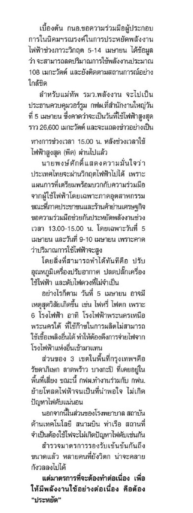 วอร์รูม 10 วันอันตราย(พลังงาน) เริ่ม 5 เม.ย.ถอดปลั๊กสู้
