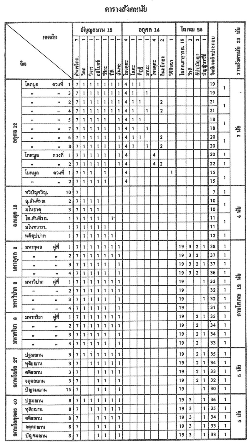 ดู ตาราง สังคหนัย ด้านล่างนี้ประกอบนะครับ