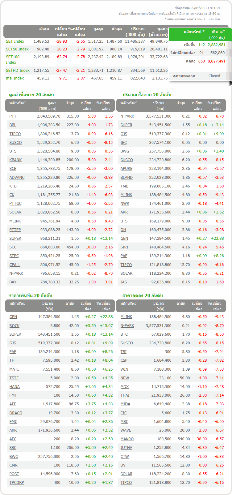 ### Graph Stock : Top 10 . Weekly 05.04.2013 ###