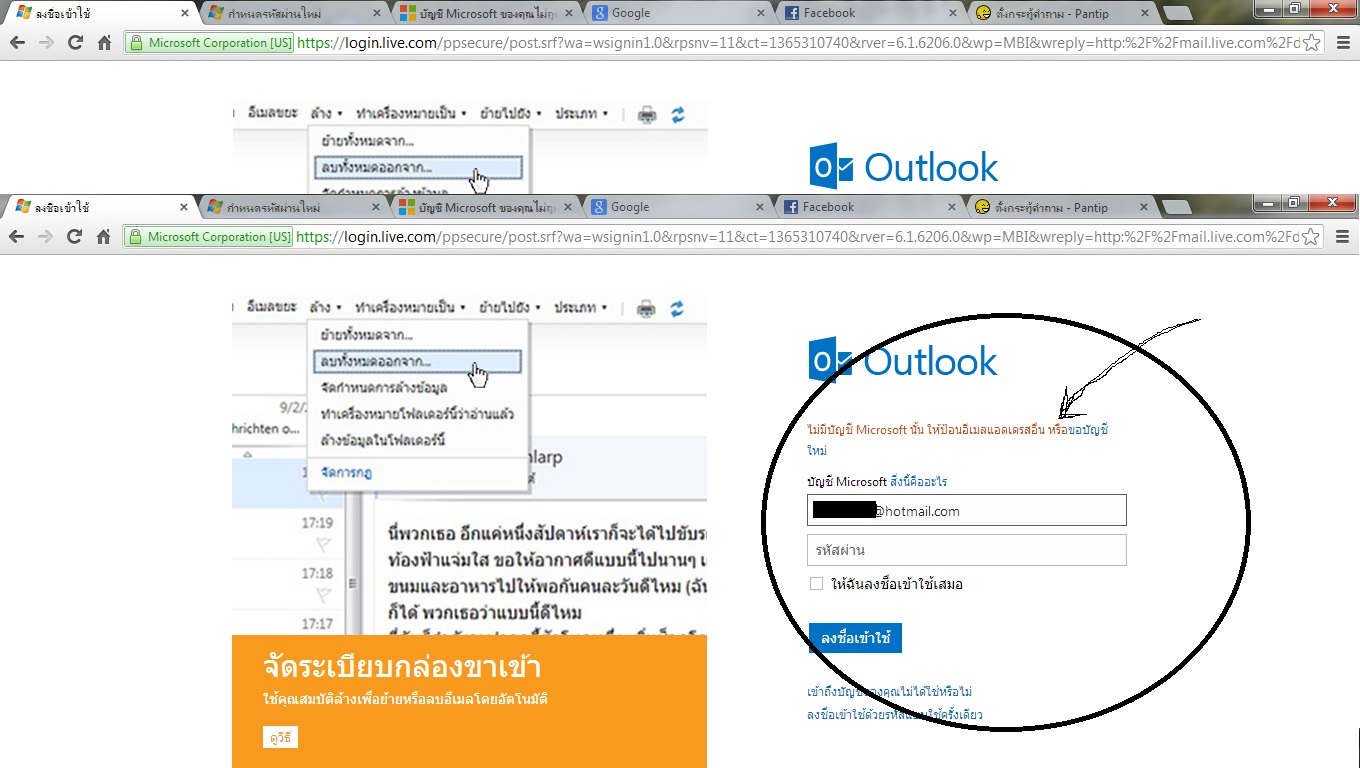 คืองงมากเพราะผมยังใช้อีเมลืนี้เข้าเฟสที่สมัคใหม่ได้อยุ่นะครับ แต่ทำไมเข้าHotmailไม่ได้ล่ะ แบบนี้เมล์จะถูกแฮ๊กมั๊ยครับ หรือเกิดจากอะไรครับใครรู้บ้าง ผมจะลองเข้าไปแก้ไขรหัสผ่านอีเมล์ก็เข้าไม่ได้เพราะมันก็บอกแต่ว่าในระบบไม่มีอีเมล์นี้ ซึ่งผมพิมพ์อีเมล์ถูกต้องแน่นอนครับ